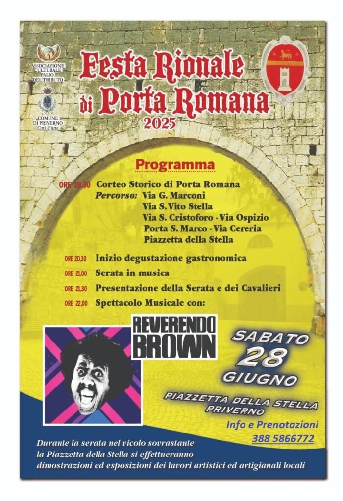 Ieri sera a Priverno si è svolta la serata enogastronomica e musicale di Porta Romana, terza contrada di quattro,del Palio del Tributo. Nonostante il caldo da bollino rosso tutto si è svolto nel migliore dei modi. Ringraziamo di cuore tutti coloro che sono intervenuti. Durante la serata ci sono stati tanti bei momenti che potrete vedere attraverso gli scatti dei fotografi ufficiali del Palio Fabio Di Legge e Carlo Picone. Da sottolineare la presentazione dei cavalieri Franco Tasciotti e Lorenzo Mantovano che quest’anno si contenderanno per noi la tanto attesa corsa all’anello e il drappo dipinto dall’artista Marinella Pompeo presente alla serata. Non è mancata l’amministrazione comunale nella persona del Sindaco Anna Maria Bilancia, del vice sindaco Antonio Ines,l’assessore alla cultura Sonia Quattrociocche e l’assessore Enrica Onorati. Presente anche l’assessore Luigina Vellucci non fisicamente ma con una lettera con i suoi saluti per tutti i presenti. Non poteva mancare la Presidente del Palio Valentina De Angelis con i suoi saluti e ringraziamenti. Molto toccante l’omaggio del Presidente Valentina, del capoporta Giovanni Battista e del vice capoporta Tiziana Pietrobono che ha anche presentato la serata, alla contradaiola storica Assunta che quest’anno è alla sua 25° partecipazione, e che con il suo entusiasmo ne farà sicuramente ancora molte altre. Ad allietare il tutto il gruppo misicale Reverendo Brown con la bravissima solista Cristina Giorgi.Una serata davvero ben riuscita grazie all’impegno di tutti i contradaioli coordinati da un capoporta straordinario, Giovanni Battista Fiorini che dà ogni anno il massimo di sé per far sì che ogni cosa sia ben fatta. Grazie dunque a tutti ma a lui un ringraziamento speciale da tutti i contradaioli.![]()